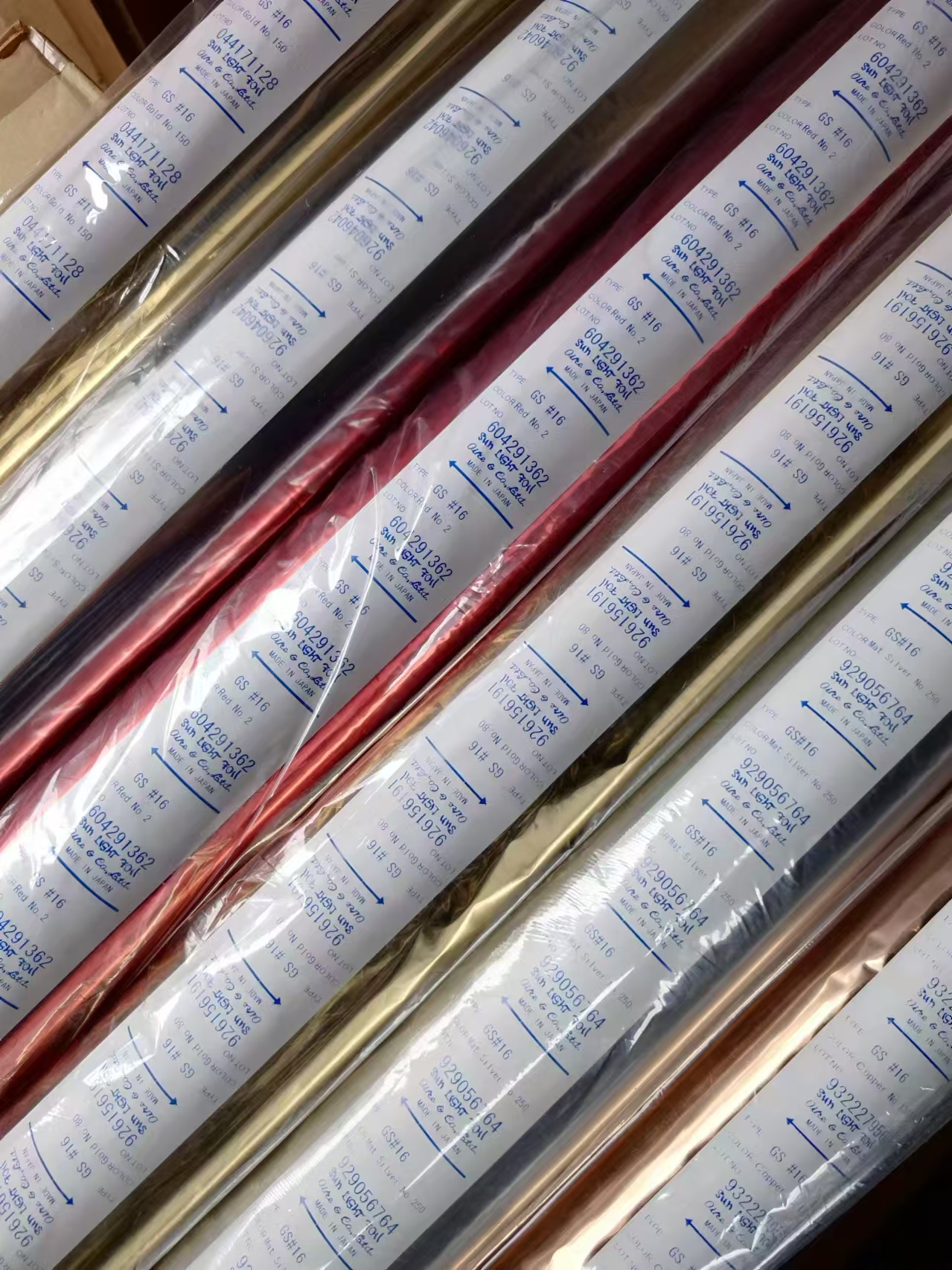 燙金紙主要經營品牌:日本尾池OIKE、德庫爾茲KURZ、日本東麗TORAY、日本麗光REIKO、美國CFC、美國皇冠CROWN 、美國ITW,日本KATANI、日本中井NAKAI、 韓國KOLON韓國ITW, 澳洲Milford Astor、臺灣光群K.LASER